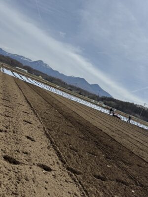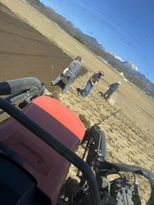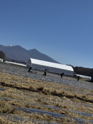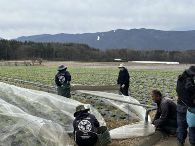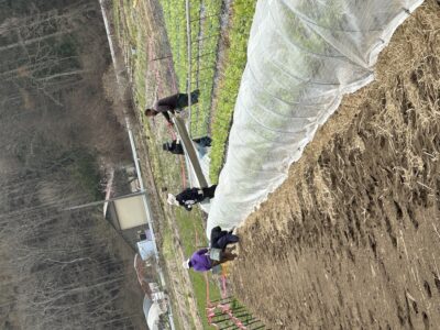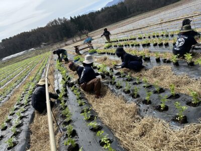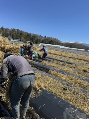 まだ定植前の畑にマルチシートを張っていく作業をしました![]()