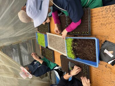 タフベルという薄い網が細かいネットを被せていく作業をしました!