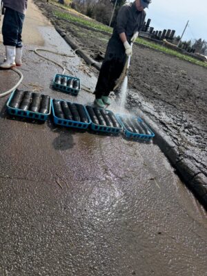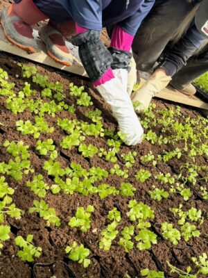 今日の午前中の作業はある程度大きくなったセロリを畑に定植する作業と