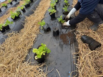 セロリの苗をある程度まで育てたものを畑に植えていく作業をしました!