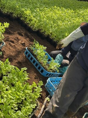 畑へ植えるポットに入った苗をかごの中に入れる作業です!