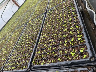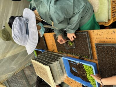 今日の作業は種から育てた苗を一つずつに分けて入れたプラグという容器から